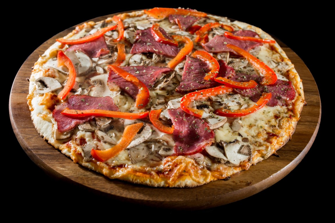 Padažas, sūris, pievagrybiai, rūkyta jautiena, šviežios paprikos, raudonėliai