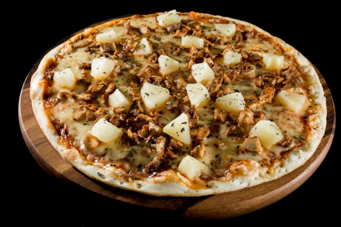 Padažas, sūris, vištiena, ananasai, raudonėliai